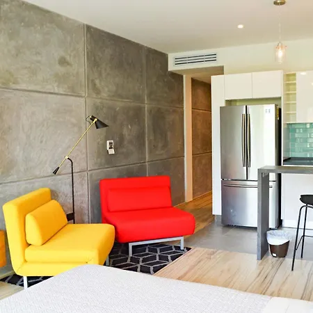 Studio On 5Th, Pvt Balcony, Oceanview Roof Poolヴィラは,プラヤデルカルメン空港から自動車で10分の宿泊施設です. このヴィラは1室のベッドル-ムの他に顧客が利用可能な電子レンジ,冷蔵庫 と台所用品を提供する器具でいっぱいの台所があります.